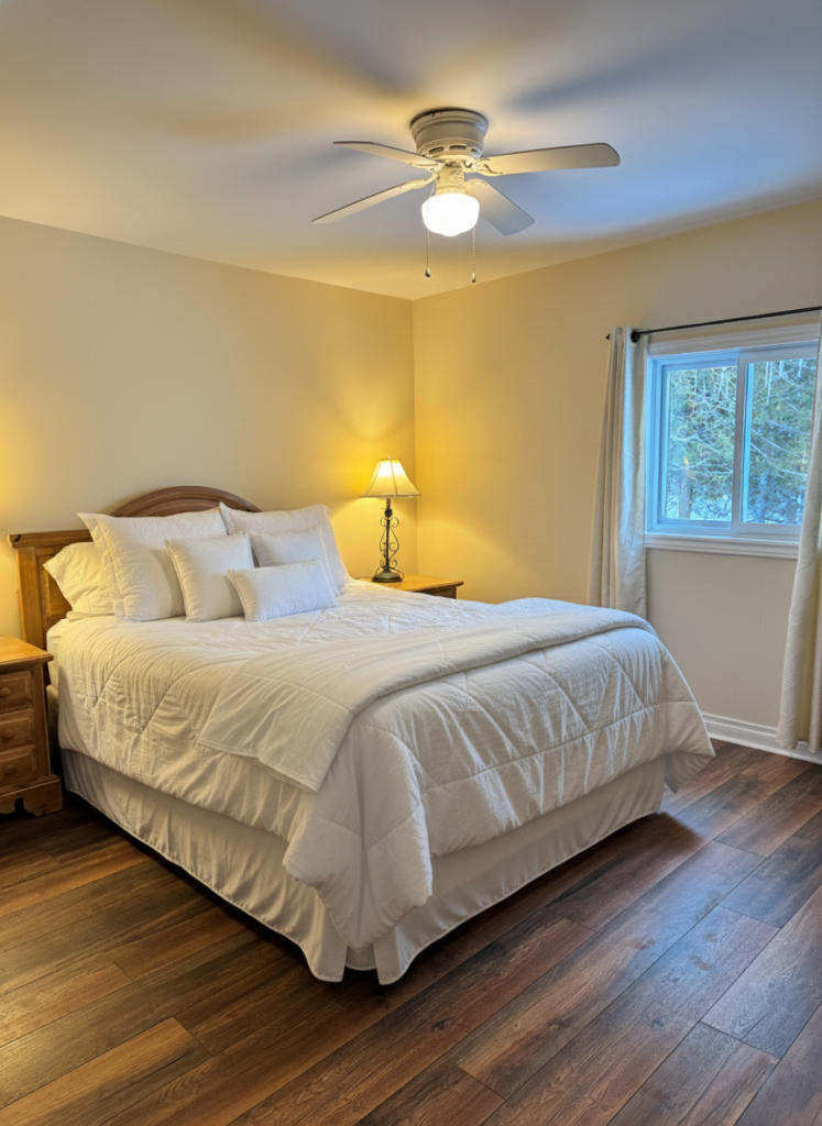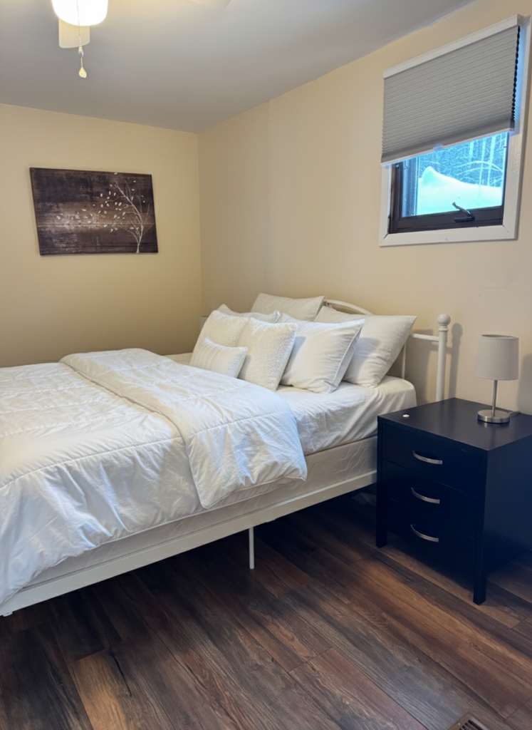 The Nest is also a true four season retreat, making it perfect for cozy winter getaways. Guests can enjoy being only a 5 minute drive, or 3 kilometers, from Sir Sam’s Ski Resort, a local favourite for skiing, snowboarding, and winter fun. The area also offers easy access to nearby ATV and snowmobile trails, giving you plenty of ways to explore the snowy landscapes. After a day of adventure, you can unwind in the indoor sauna located in the basement, or relax in the cozy indoor living areas with family and friends.